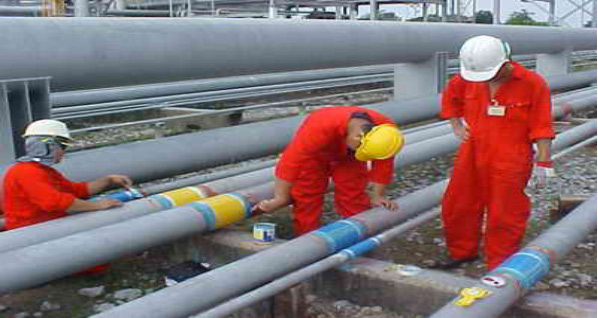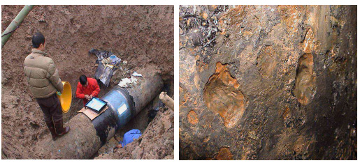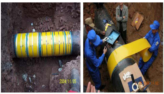 (管徑Ф508、Ф610,設(shè)計(jì)壓力6.9 Mpa。該項(xiàng)目從2005年6月開始,對(duì)位于新疆輪庫油線和氣線防腐層大修中發(fā)現(xiàn)的大于30%以上的腐蝕缺陷,使用MKT-8補(bǔ)強(qiáng)修復(fù)技術(shù)進(jìn)行修復(fù)。該管線穿越戈壁沙漠地區(qū),部分管段穿越鹽堿地區(qū)。充分展現(xiàn)了復(fù)合修復(fù)材料在戈壁沙漠地區(qū)的適應(yīng)性。)