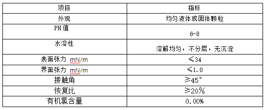 一、產品簡介 防水鎖劑由硅基化合物和醇類化合物等為原材料,經過乙氧基化反應而生產的一種非離子表面活性劑。該產品可在低滲透油氣藏鉆井過程中有效防止水鎖損害的發生,從而保護低滲透油氣儲層。 二、技術要求